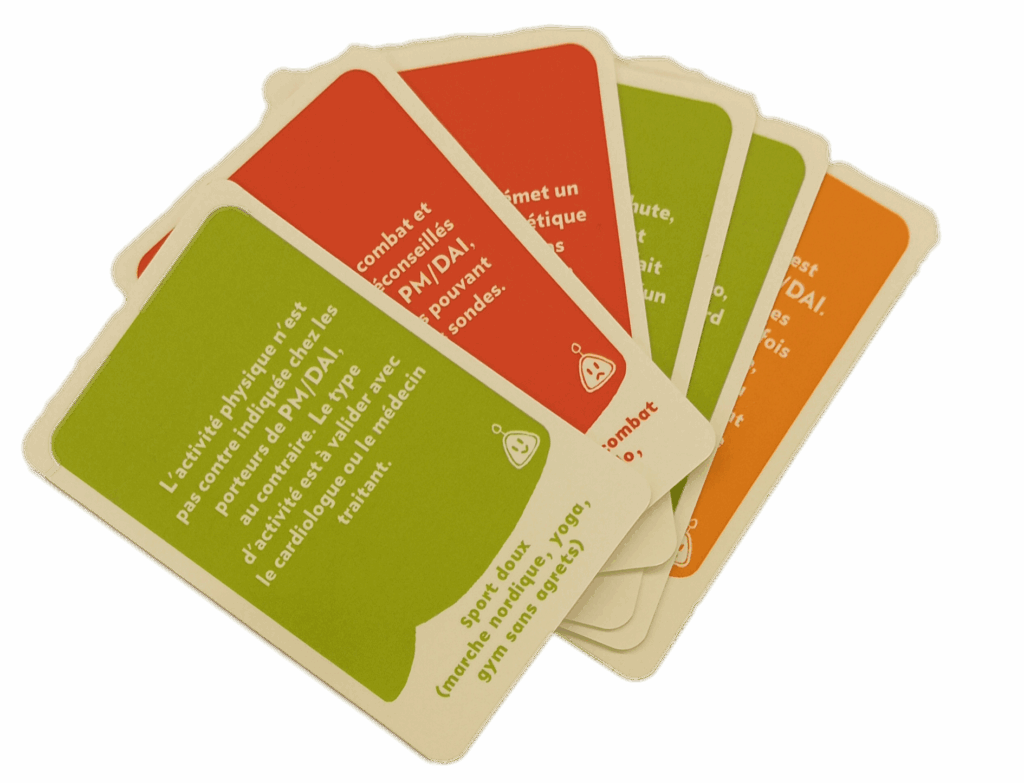 « Jeu éducatif destiné aux patients porteurs d’une prothèse rythmique cardiaque. Informer de façon ludique les patients implantés d’une prothèse rythmique cardiaque sur les précautions à prendre dans la vie courante et les risques d’interférence électromagnétique. »